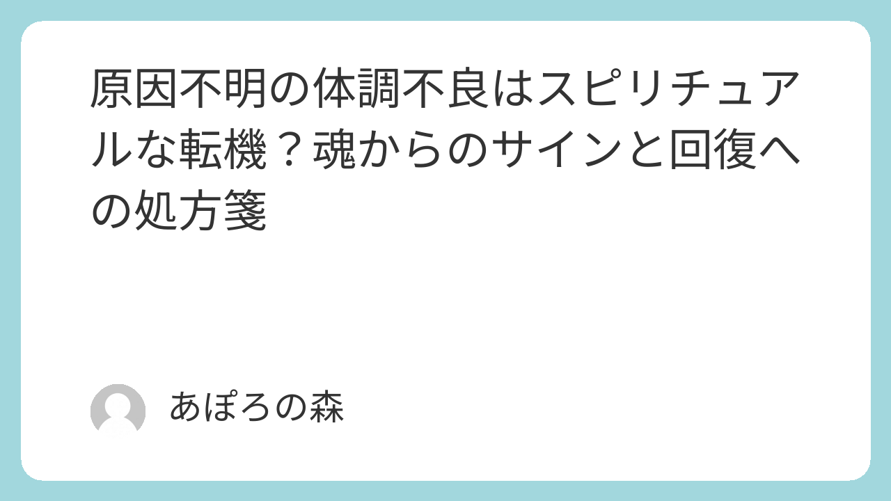 あぽろの森では、これまで数多くの「原因不明の不調」に悩む方と向き合ってきました。その経験から断言します。今のあなたの状態には、必ずスピリチュアルな意味があります。この記事が、暗いトンネルの中にいるあなたの、小さな灯りになりますように。