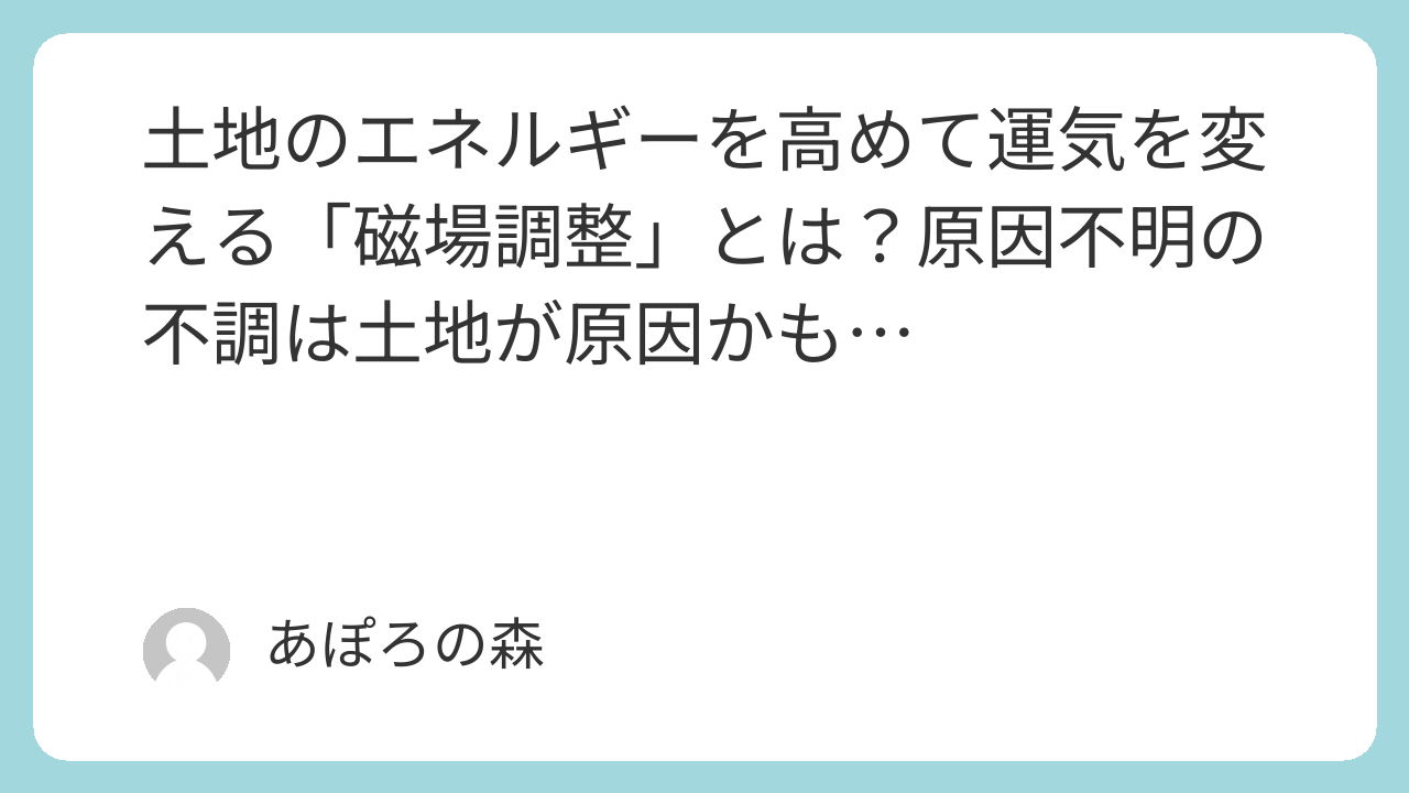 長年抱えてきた原因不明の不調や、なぜか続く不運。その根本原因は、あなたが毎日過ごす「土地のエネルギー」にあるのかもしれません。目に見えない世界だからこそ、多くの方が気づかずに悩み続けています。しかし、土地のエネルギーは「磁場調整」によって、必ず良い方向へ変えることができます。