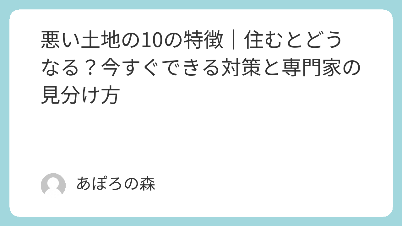 悪い土地の特徴を知ることは、幸せな暮らしへの第一歩