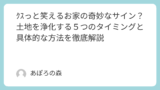 もし、あなたが今、原因のわからない不調や不運に悩んでいるのなら、それはあなたのせいではありません。もしかしたら、ただ土地のエネルギーが少しだけ疲れてしまっているだけかもしれません。悪い土地の特徴を知り、正しく対処すれば、状況は必ず好転します。