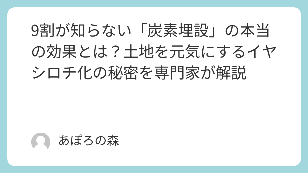 9割が知らない「炭素埋設」の本当の効果とは?土地を元気にするイヤシロチ化の秘密を専門家が解説